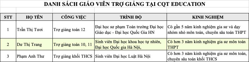 - Cử nhân trường Kinh tế Quốc dân, có chứng chỉ sư phạm.